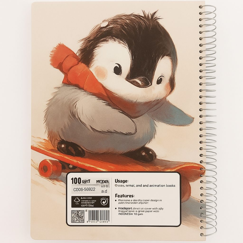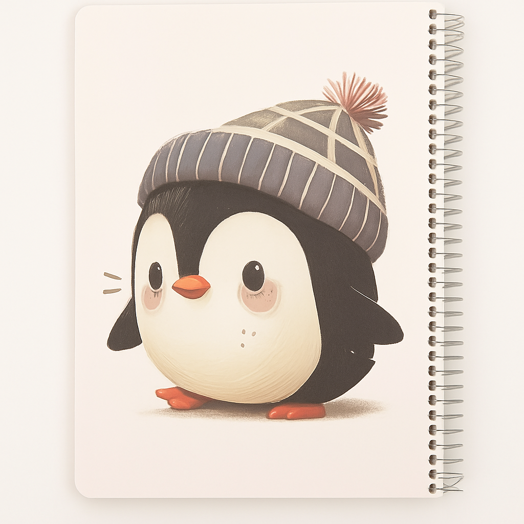 این دفتر با طراحی فانتزی از یک پنگوئن بامزه با کلاه پشمی، نه تنها لبخند را به لب میآورد، بلکه روحیهای شاد و کودکانه را در فضای تحصیل یا کار جاری میسازد. جلد آن از نوع مقوای سخت لمینتشده است که هم از نظر دوام در برابر تا شدن و خراش مقاوم است، و هم ظاهر آن را حرفهایتر و شکیلتر میکند.