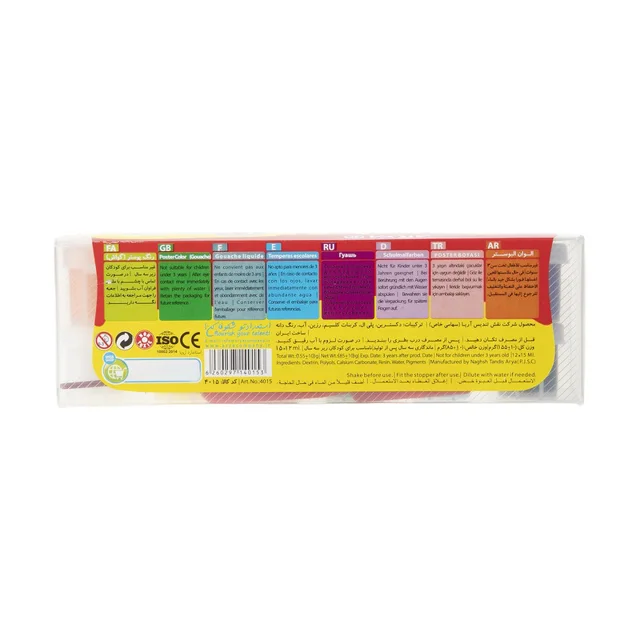 گواش 12 رنگ آریا مجموعهای کامل و با کیفیت از رنگهای غلیظ و پودری است که برای نقاشی و هنرهای دستی مناسب میباشد. رنگها دارای پوشش بالا، ثبات رنگ و قابلیت ترکیب آسان هستند و بستهبندی مقاوم آن، نگهداری را تضمین میکند.