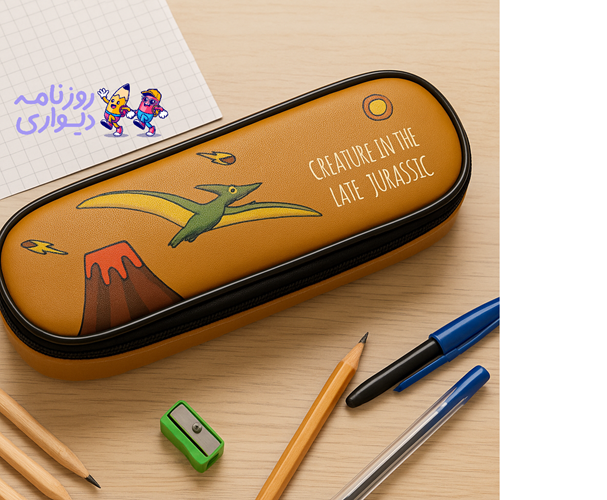 طرح منحصربهفرد آتشفشان همراه با تصویر پرنده ماقبل تاریخ و عناصر فانتزی، جلوهای خاص به این محصول بخشیده است. این جامدادی با بسته شدن زیپی، محفظهای امن و جادار برای نگهداری انواع نوشتافزار فراهم میآورد.