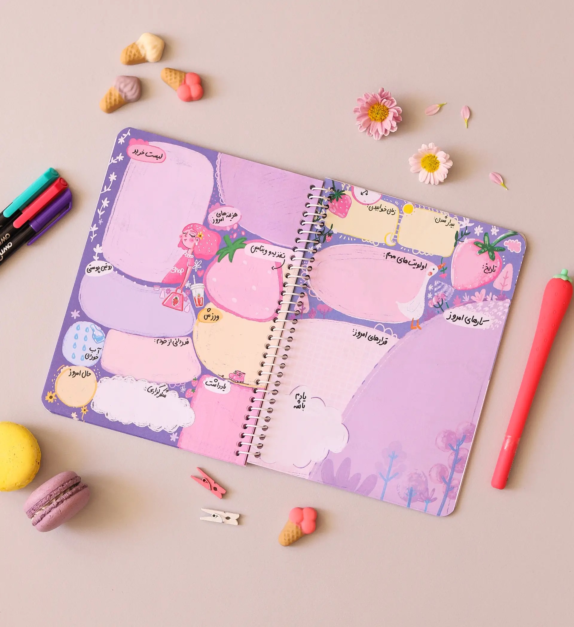 پلنر توتفرنگی از برند یاس آکام، مخصوص دختران خلاق و علاقهمند به برنامهریزی است. این پلنر با صحافی سیمی و جلد گلاسه طراحی شده و فرم عمودی آن امکان یادداشت راحت برنامههای روزانه را فراهم میکند. ابعاد ۲۰×۱۴ سانتیمتر و شامل ۶۰ برگ با کیفیت بالا است. طراحی جذاب و کاربردی این پلنر، آن را به گزینهای عالی برای مدرسه، دانشگاه یا استفاده شخصی تبدیل کرده است. با پلنر توتفرنگی، برنامههای خود را منظم و خلاقانه مدیریت کنید.