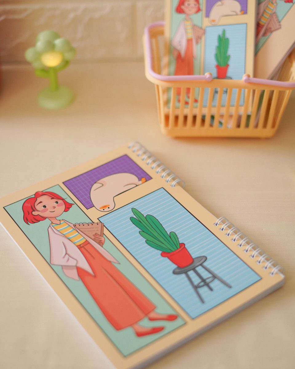 دفتر مشق اسمارتیز سری Back to School – طرح کاکتوس با طراحی خاص شامل تصویر یک دختر در کنار گلدان کاکتوس روی چهارپایه چوبی، به یکی از جذابترین دفاتر این مجموعه تبدیل شده است. این دفتر با جلد مقوایی گلاسه نرم و ۸۰ برگ با گرماژ ۸۰ گرم تولید شده که برای نوشتن با خودکار و مداد کاملاً مناسب است. صحافی فنر دوبل هم باعث باز شدن راحت دفتر روی میز و استفاده آسان در طول روز میشود. طراحی خلاقانه این دفتر الهامبخش بوده و برای دانشآموزان و دانشجویانی که به دنبال دفتری کاربردی و زیبا هستند، گزینهای ایدهآل محسوب میشود.